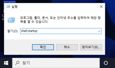 실행창에 “shell:startup”이라고 입력하면 시작 프로그램 폴더로 이동할 수 있다.